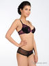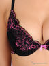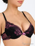 Бюстгальтер Push up на косточках с поролоновыми чашками. Выполнен из кружевного материала, чашки внутри с хлопковой подкладкой, дополнены съемным уплотнителем. Несъемные эластичные бретели регулируются по длине. Застегивается на два крючка в три позиции.