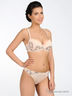Бюстгальтер Push up на косточках с поролоновыми чашками. Выполнен из эластичного шелковистого материала с кружевными вставками, чашки внутри с хлопковой подкладкой, дополнены съемным уплотнителем. Съемные эластичные бретели регулируются по длине. Застегивается на два крючка в две позиции.