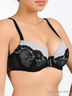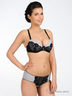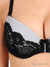 Бюстгальтер Push up на косточках с поролоновыми чашками. Выполнен из тонкого шелковистого эластичного материала с контрастными кружевными вставками. Чашки внутри с хлопковой подкладкой, дополнены съемным уплотнителем. Съемные эластичные бретели регулируются по длине. Застегивается на два крючка в три позиции.