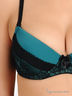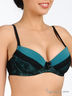Бюстгальтер Push up на косточках с поролоновыми чашками. Выполнен из эластичного шелковистого материала, чашки внутри с хлопковой подкладкой, дополнены съемным уплотнителем. Съемные эластичные бретели регулируются по длине. Декорирован кружевными вставками. Застегивается на два крючка в три позиции.