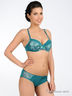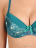 Бюстгальтер Push up на косточках с поролоновыми чашками. Выполнен из эластичного шелковистого материала, чашки внутри с хлопковой подкладкой, дополнены съемным уплотнителем. Съемные эластичные бретели регулируются по длине. Декорирован кружевными вставками. Застегивается на два крючка в три позиции.