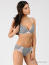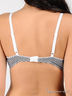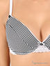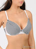 Оригинальный бюстгальтер push-up на косточках с поролоновой чашкой. Выполнен из тонкой эластичной ткани с рисунком "гусиная лапка". Несъемные эластичные бретели регулируются по длине. Застегивается на один крючок в три позиции. Чашки дополнены съемным поролоновым уплотнителем. Декорирован кружевными вставками.