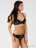 Комфортный бюстгальтер push-up на косточках с поролоновой чашкой. Чашки выполнены из тонкого эластичного материала, спинка из кружева. Несъемные эластичные бретели регулируются по длине. Застегивается на один крючок в три позиции. Чашки декорированы оригинальным рисунком, внутри дополнены съемным поролоновым уплотнителем.