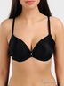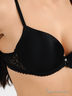 Стильный бюстгальтер с плотными чашечками из поролона с эффектом push-up. Тонкие регулируемые бретели. Спереди декорирован бантиком с бусинами. Дополнен кружевными вставками. Застежка на крючок на одну из двух позиций.