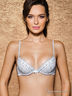 Оригинальный бюстгальтер Push up на косточках с поролоновыми чашками. Выполнен из тонкой эластичной ткани. Несъемные эластичные бретели регулируются по длине. Декорирован кружевными вставками.