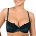 Бюстгальтер push-up на косточках, с поролоновым уплотнителем. На чашечках вертикальный шов. Съемные бретели регулируются по длине. Застежка на два крючка. Выполнен из тонкой эластичной жаккардовой ткани. Декорирован кружевными вставками и оригинальным принтом.