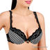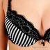 Оригинальный бюстгальтер Push up на косточках с поролоновыми чашками. Выполнен из тонкой эластичной ткани и кружевного материала, внутренняя часть чашек выполнена из мягкого хлопкового материала. Несъемные эластичные бретели регулируются по длине. Нижняя часть чашек дополнена съемным уплотнителем. Застегивается на два крючка в две позиции. Чашки дополнены кружевными вставками. Декорирован оригинальным принтом - полоска.