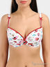 Модный бюстгальтер из гладкого материала. Модель с тонкими поролоновыми чашечками на косточках. Съемные вставки создают эффект push-up. Тонкие регулируемые бретели. Бюст украшен по верху бархатистой тесьмой и бантиками. Боковины усилены по верху и по низу резинками. Застежка на два крючка в одной из двух позициях.