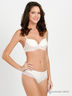 Бюстгальтер push-up на косточках с поролоновой чашкой. Выполнен из тонкого хлопкового трикотажа. Несъемные бретели регулируются по длине, застегивается на два крючка в три позиции. Декорирован контрастным кружевом.