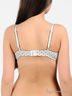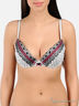 Отличный бюстгальтер с формованной чашкой на косточках. Выполнен из тонкой эластичной ткани с рисунком. Чашки на поролоне средней толщины с несъемным уплотнителем push-up. Несъемные бретели регулируются по длине, застежка на два крючка в три позиции. Чашки декорированы кружевом и контрастной тесьмой, на дорожке бантик.