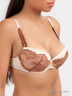Великолепный бюстгальтер с тонкой поролоновой чашкой на косточках, дополненной съемными вкладками, создающими эффект push-up. Выполнен из тонкой атласной ткани, чашки с хлопковой подкладкой. Несъемные бретели регулируются по длине, застежка на один крючок в три позиции. Декорирован контрастными кружевными нашивками на чашках.