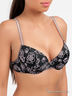 Очаровательный бюстгальтер с поролоновыми чашками на косточках, дополненными несъемным уплотнителем push-up. Выполнен из тонкой шелковистой эластичной ткани. Несъемные бретели регулируются по длине, застежка на два крючка в три позиции. Декорирован интересным рисунком.
