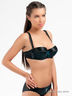 Великолепный бюстгальтер балконет с тонкой поролоновой чашкой на косточках, дополненной съемными вкладками, создающими эффект push-up. Выполнен из тонкой шелковистой эластичной ткани. Съемные бретели регулируются по длине, застежка на два крючка в две позиции, задняя планка усилена силиконовой лентой, чашки с хлопковой подкладкой. Бюстгальтер декорирован вставкой с бархатистым напылением.