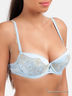 Очаровательный бюстгальтер с поролоновыми чашками на косточках, дополненными съемным уплотнителем push-up. Выполнен из тонкой атласной эластичной ткани, чашки с хлопковой подкладкой. Несъемные бретели регулируются по длине, застежка на один крючок в три позиции. Украшен кружевными нашивками на чашках и декоративным элементом со стразами на дорожке.