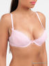Великолепный бюстгальтер с тонкой поролоновой чашкой на косточках, дополненной съемными вкладками, создающими эффект push-up. Выполнен из кружевной ткани, чашки с хлопковой подкладкой. Съемные бретели регулируются по длине, застежка на один крючок в две позиции.