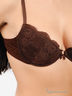 Потрясающий бюстгальтер на косточках. Чашки на тонком поролоне выполнены из кружева с хлопковой подкладкой, дополнены съемным поролоновым уплотнителем push-up, спинка из тонкой эластичной ткани с жаккардовым плетением. Несъемные бретели регулируются по длине, застежка на один крючок в две позиции.