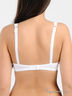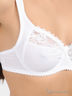 Классический бюстгальтер с мягкими чашечками на косточках, декорированными кружевными вставками. Спереди декоративный бантик из атласной ленты. Широкие регулируемые бретели. Верх и низ боковин усилен резинками. Застежка на два крючка на одно из двух положений.