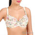 Оригинальный бюстгальтер классической формы на косточках с поролоновыми чашками. Выполнен из тонкой эластичной ткани, внутренняя часть чашек выполнена из мягкого хлопкового материала. Несъемные эластичные бретели регулируются по длине. Застегивается на два крючка в две позиции. Чашки декорированы оригинальным принтом и кружевными вставками.