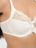Стильный бюстгальтер с мягкими текстильными чашечками на косточках, переходящих в широкие регулируемые бретели. Верх бюста декорирован кружевом и дополнен резинкой. Боковины выполнены из гладкой ткани, верх и низ усилен резинками. Застежка на два крючка на одно из двух положений.