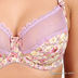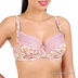 Оригинальный бюстгальтер классической формы на косточках. Выполнен из тонкой эластичной ткани. Несъемные эластичные бретели регулируются по длине. Застегивается на два крючка в две позиции. Декорирован оригинальным принтом и кружевными вставками.