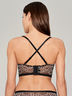 Притягательный бюстгальтер c формованной треугольной чашкой без каркасов. Выполнен из двухцветного кружева. Оптимальную посадку обеспечивают боковые корсетные вставки и широкая задняя часть с застёжкой на 3 крючка. Регулируемые бретели можно застёгивать двумя способами: классическим и крест-накрест, создавая новый оригинальный образ.
