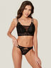 Эффектный бюстгальтер с мягкой треугольной чашкой с косточками. Выполнен из кружева с цветочным узором и эластичной сетки в "горошек". Оптимальную посадку обеспечивают кружевная вставка под грудью, боковые корсетные вставки и широкая спинка с застёжкой на 3 крючка. Оригинальная вставка из сетки и двойные бретели добавляют интригу.
