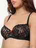 Полностью мягкий, ажурный, полупрозрачный бюстгальтер на косточках. Бока из однотонной ткани. Бретели съемные, регулируются, сверху имеют декор, изнутри усилены.