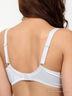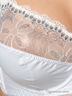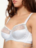 Высокий бюстгальтер из эластичной мерцающей ткани, нижняя половина чашки на тонком подкладе, верхняя часть из кружева в тон основной ткани. Бретели регулируются, не убираются. Спереди декоративный элемент.