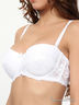 Бюстгальтер-балконет, чашка на тонком поролоне. Вставки push-up убираются. Сверху декорирован кружевом. Бока и спинка из гипюра на дополнительных косточках, края продублированы силиконовой бейкой. Бретели съемные, регулируемые. Бюстгальтер можно носить без бретелей.