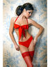 Эротический бюстгальтер из тонких резинок. Спереди грудь прикрывает большой бант из атласа, который можно завязывать произвольно. В боках косточки, бант не скатывается. Сзади застежка на крючки. Бретель бюстгальтера одна вокруг шеи, регулируется, не убирается. Размеры как у одежды.
