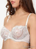 Полностью мягкий, ажурный, полупрозрачный бюстгальтер. Бока из однотонной ткани с набивным рисунком(полоска). Бретели съемные, узкие, регулируются, изнутри усилены. Застежка: 2 крючка на 3 позиции(высота 3 см).