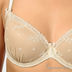 Бюстгальтер с закрытыми чашками, тонкий слой поролона, косточки. Регулируемые по длине широкие бретели-тесьма. Декор вышивкой и кружевом. Застежка на спине на три ряда двойных крючков. Подкладка из мягкой ткани.