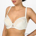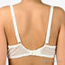 Бюстгальтер с закрытыми чашками, без поролона, горизонтальный шов, косточки. Регулируемые по длине широкие бретели. Декор вышивкой. Застежка на спине на три ряда двойных крючков. Подкладка из мягкой ткани.