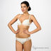 Бюстгальтер с закрытыми чашками, тонкий слой поролона, косточки. Регулируемые по длине бретели-тесьма, дополнены крючком, который позволяет соединять бретели на спине. Декор вышивкой и кружевом. Застежка спереди на магнитную пряжку. Подкладка из мягкой ткани.