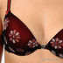 Бюстгальтер с закрытыми чашками, тонкий слой поролона, косточки. Регулируемые по длине бретели-тесьма. Декор вышивкой и кружевом. Застежка спереди на магнитную пряжку. Подкладка из мягкой ткани.