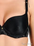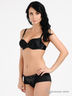 Оригинальный бюстгальтер на косточках с поролоновой чашкой. Выполнен из тонкой шелковистой ткани, чашки внутри дополнены подкладкой. Несъемные эластичный бретели регулируются по длине. Застегивается на два крючка в три позиции. Декорирован кружевом.