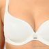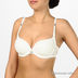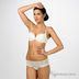 Бюстгальтер с закрытыми чашками, тонкий слой поролона, косточки. Регулируемые по длине бретели. Декор вышивкой и кружевом. Застежка на спине на три ряда двойных крючков. Подкладка из мягкой ткани.