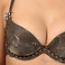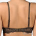 Бюстгальтер с закрытыми чашками, тонкий слой поролона, косточки. Регулируемые по длине бретели. Декор вышивкой и кружевом. Застежка на спине на три ряда двойных крючков. Подкладка из мягкой ткани.