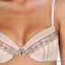 Бюстгальтер на косточках с формованной чашечкой. Бретели регулируются по длине. Застежка на два крючка. Декорирован кружевными вставками и атласными лентами.