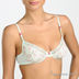 Нежный бюстгальтер на косточках с мягкой чашечкой из эластичного, приятного на ощупь материала. На чашечка вертикальный шов. Бретели регулируются по длине. Застежка на два крючка. Декорирован маленькими очаровательными розочками.