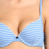 Бюстгальтер на косточках с вертикальным швом на чашечках. Бретели регулируются по длине. Застежка на два крючка. Выполнен приятного на ощупь материала с нежным и игривым принтом в горох и полоску. Комфортная модель на каждый день.