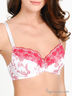 Бюстгальтер на косточках с поролоновой чашкой выполнен из тонкого сетчатого материала и шелковистой ткани. Несъемные бретели регулируются по длине, застегивается на два крючка в три позиции. Декорирован оригинальным принтом и контрастным кружевом.