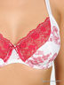 Бюстгальтер на косточках выполнен из тонкого сетчатого материала и шелковистой ткани. Несъемные бретели регулируются по длине, застегивается на два крючка в три позиции. Декорирован оригинальным принтом и контрастным кружевом.