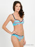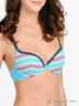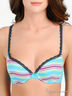 Бюстгальтер на косточках с поролоновой чашкой выполнен из тонкого хлопкового трикотажа. Несъемные бретели регулируются по длине, застегивается на один крючок в три позиции. Декорирован оригинальным принтом - разноцветная полоска.