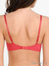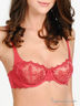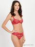 Бюстгальтер на косточках из тонкой шелковистой ткани, чашки выполнены из сетчатого материала с вышивкой. Несъемные бретели регулируются по длине, застегивается на один крючок в три позиции.