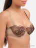 Великолепный бюстгальтер классической формы на косточках. Чашки выполнены из кружева, имеют хлопковую подкладку, спинка из эластичной шелковистой ткани. Несъемные бретели регулируются по длине, застежка на один крючок в три позиции.
