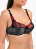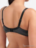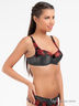 Комфортный бюстгальтер классической формы на косточках. Выполнен из тонкой атласной ткани с рисунком, нижняя часть чашки на тонком поролоне с хлопковой подкладкой. Несъемные бретели регулируются по длине, застежка на два крючка в три позиции. Декорирован сетчатыми вставками с вышивкой и бантиком с бусиной на дорожке.