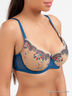 Великолепный бюстгальтер классической формы с тонкой поролоновой чашкой на косточках. Чашки выполнены из органзы, имеют хлопковую подкладку, спинка из эластичной сетчатой ткани. Несъемные бретели регулируются по длине, застежка на один крючок в две позиции. Декорирован вышивкой на чашках.