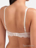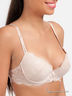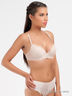 Комфортный бюстгальтер классической формы с тонкой поролоновой чашкой на косточках. Выполнен из кружевной ткани, чашки внутри с хлопковой подкладкой. Несъемные бретели регулируются по длине, застежка на два крючка в две позиции.