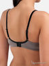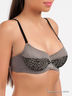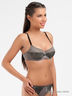 Великолепный бюстгальтер классической формы на косточках. Выполнен из тонкой эластичной шелковистой ткани. Несъемные бархатистые бретели регулируются по длине, застежка на два крючка в три позиции. Декорирован бархатистым напылением на чашках и "пряжкой" со стразами на дорожке.